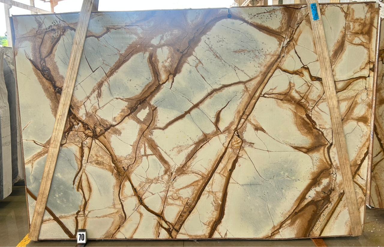<span style="color: rgb(78, 69, 64); font-family: Poppins, sans-serif; font-size: 14px; text-align: center; background-color: rgb(247, 244, 237);">Gabana é um quartzito nobre. Com fundo cremoso em marfim contrastando com veios brancos, dourados e verdes, traz sofisticação e elegância ao ambiente.</span>
